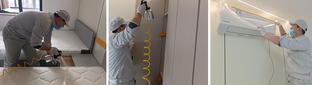 經(jīng)過了為期兩天的施工服務(wù),我們對(duì)近60套,面積2千余平方米的員工宿舍都進(jìn)行了專業(yè)、細(xì)致、全面的空氣凈化治理。
